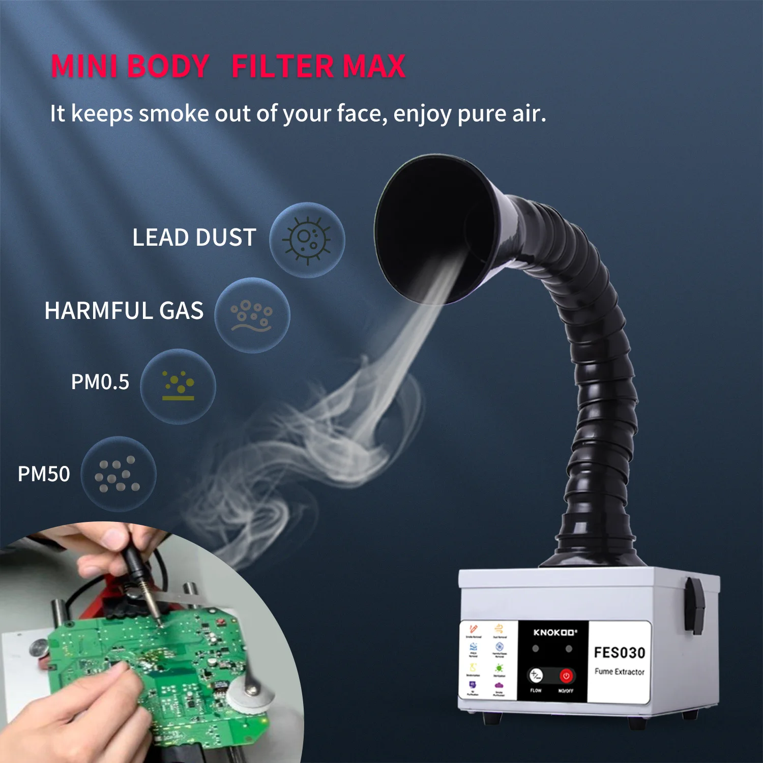 35W Mini Fume Extractor Welding Smoke Collector FES030 Desktop Fumes Purifier for Phone Repair and Soldering